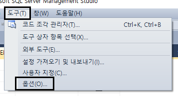 위처럼 오류 메시지가 뜰경우 취소 버튼 클릭 후 도구 -> 옵션 선택